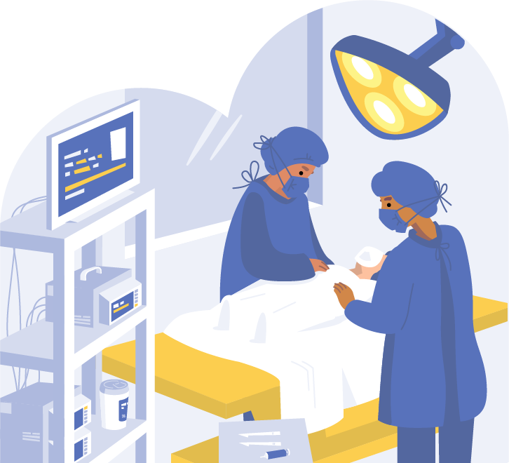 Le chirurgien ou la chirurgienne qui t'opère est entouré d'autres médecins et des infirmiers qui surveillent que tout se passe bien à l'aide d'écrans.